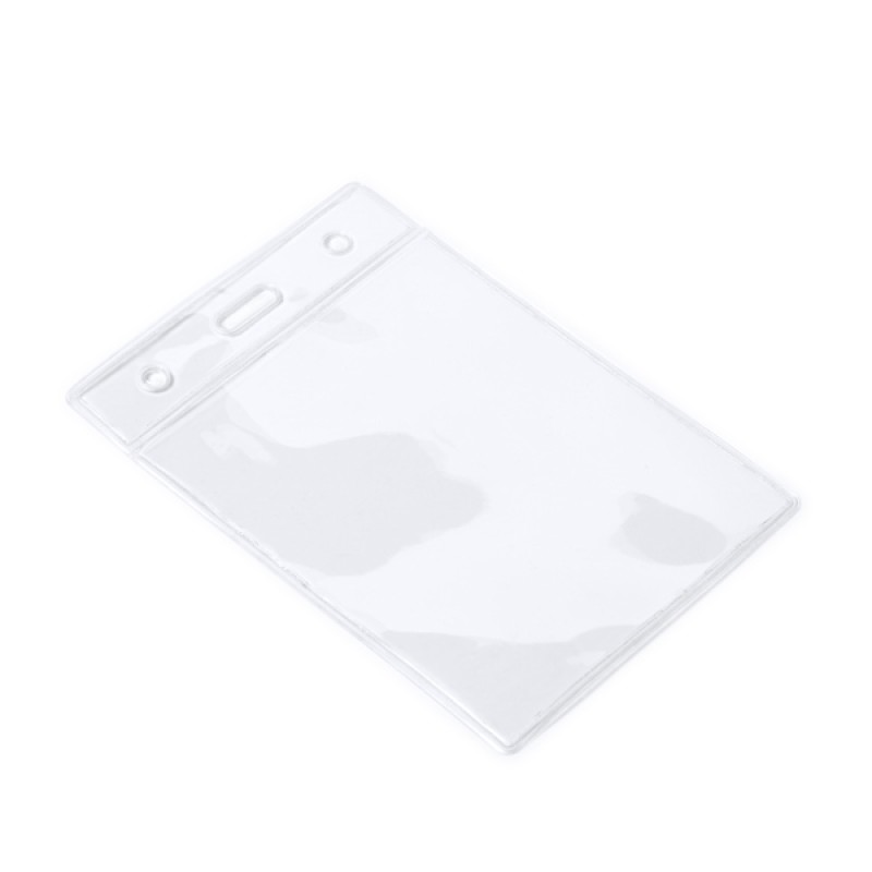 Прозрачный пластиковый держатель для идентификационных карточек в вертикальном дизайне.