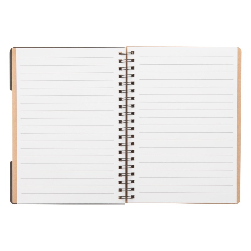 Блокнот на спирали из переработанной бумаги с 60 линованными листами и наклейками (5 × 25 шт.).