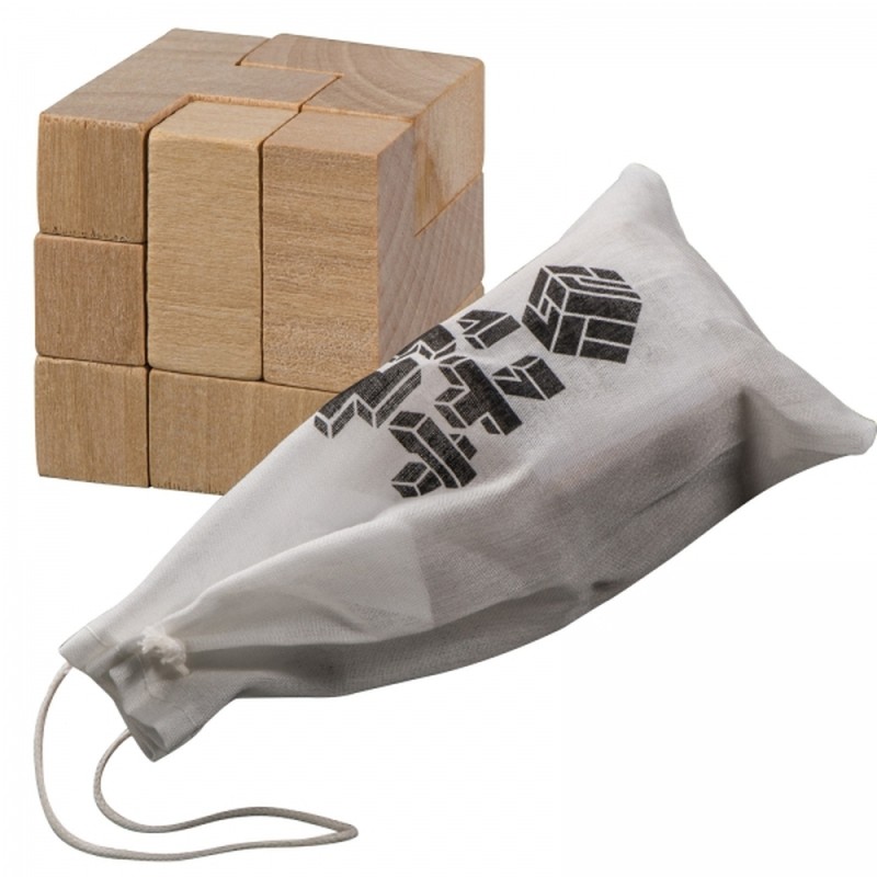 Головоломка из дерева. Логотип можно нанести на хлопчатобумажном мешке.