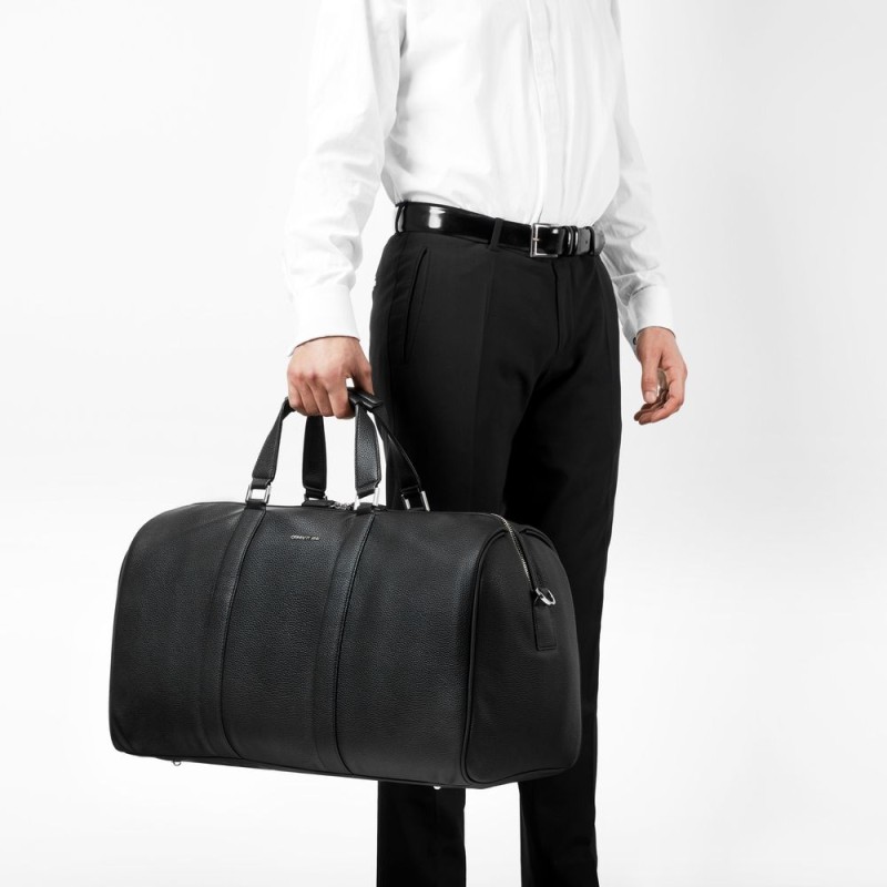 Дорожная сумка Hamilton от Cerruti 1881 сделана из очень мягкого материала с черной зернистостью. Надпись Cerruti 1881 из блестящего хромированного металла аккуратно размещена по центру верхней части сумки. На съемном ремешке вытканен логотип Cerruti 1881. Этот предмет является классическим must-have для всех видов небольших путешествий.