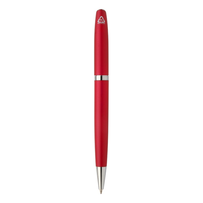 Набор переработанных алюминиевых ручек с роликовым и шариковым пишущими узлами в черной картонной подарочной коробке. С синей заправкой.