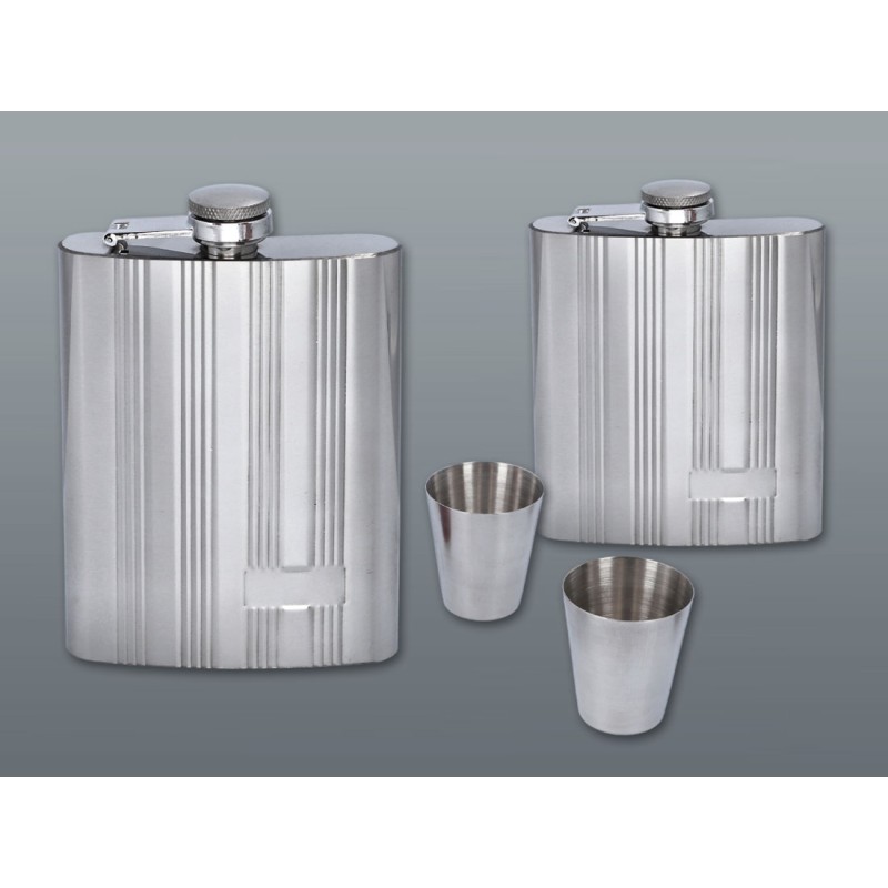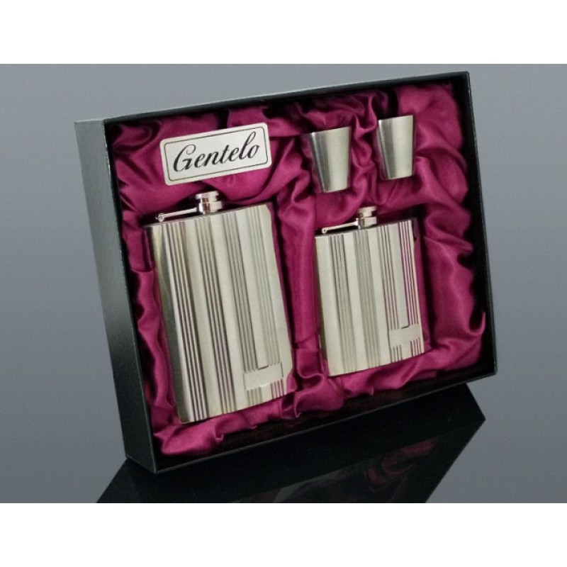 Подарочный набор, состоящий из фляги на 235 мл, фляги на 175 мл и 2 рюмок (2 х 35 мл). Все упаковано в элегантную коробку.