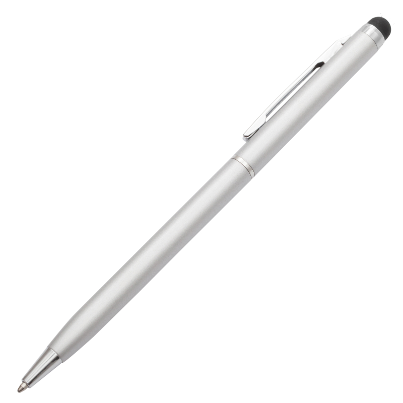 Алюминиевая шариковая ручка с наконечником, предназначенным для работы с устройствами с сенсорным экраном. С поворотным механизмом. Синие чернила.