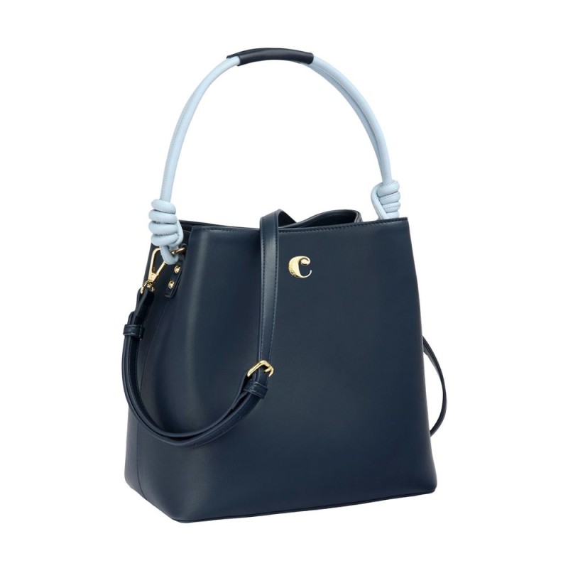 Сумка-ведро Apolline цвета navy изготовлена из мягкой матовой высококачественной веганской кожи (PU) со знаковым логотипом "C" на лицевой стороне и светлой позолоченной отделкой. Светло-голубая ручка в форме узла придает классическому дизайну современную изюминку, а золотая подпись TPU Cacharel на задней стороне подчеркивает его роскошный вид. Благодаря вместительному внутреннему пространству и универсальному дизайну, сумка Apolline цвета navy является одновременно практичной и стильной, идеально подходящей для дополнения различных нарядов. Мягкая, красочная и игривая линия предлагает веселый и элегантный способ украсить любой образ.
