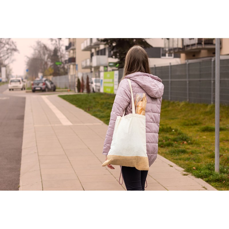 Хлопковый мешок с дном из джута, закрывается шнурком. Вес 140 г/м².