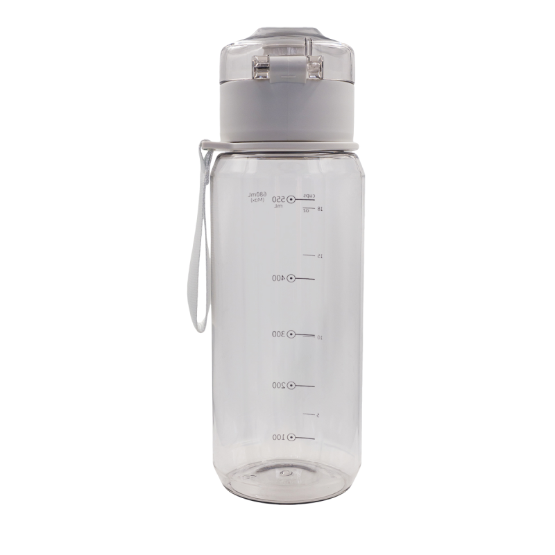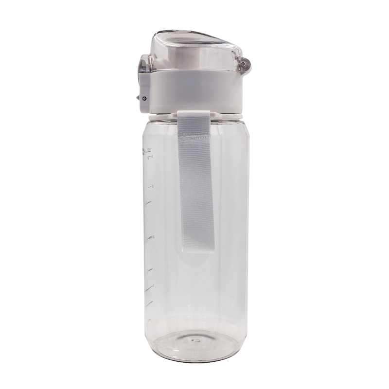 Бутылка для воды объемом 680 мл из прочного материала тритан с герметичной крышкой. На бутылке есть шкала объема, ремешок для запястья и двойная система безопасности, предотвращающая проливание жидкости, кнопка и замок-скользящий элемент.