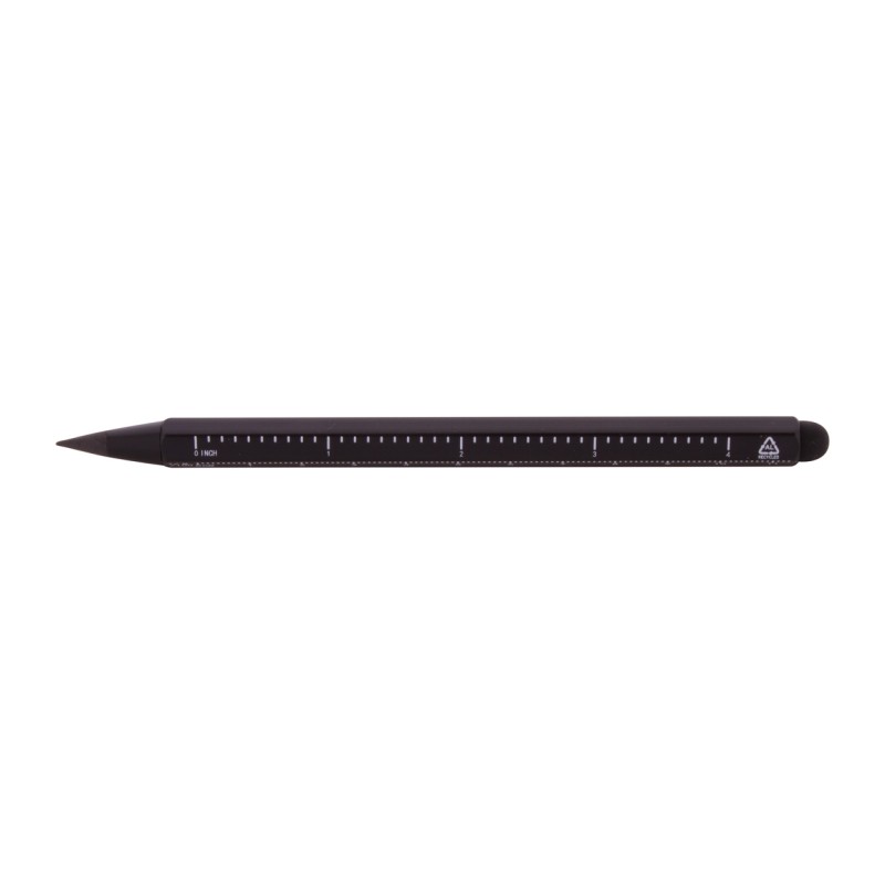 Вечный карандаш из переработанного алюминия с сенсорным грифелем и наконечником из металлического сплава, который окисляет бумагу. С шестиугольным стволом, включающим линейки длиной 11 см и 4 дюйма.